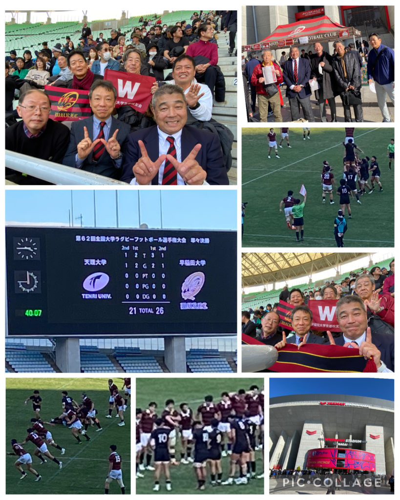 2025年12月20日(土)、ラグビー蹴球部の正月越えをかけた、ラグビー大学選手権準々決勝の対天理大学戦を、異業種交流会「御車会(みくるまかい)」の呼びかけで参集した7名で、大阪のヤンマースタジアム長居に応援に参りました。