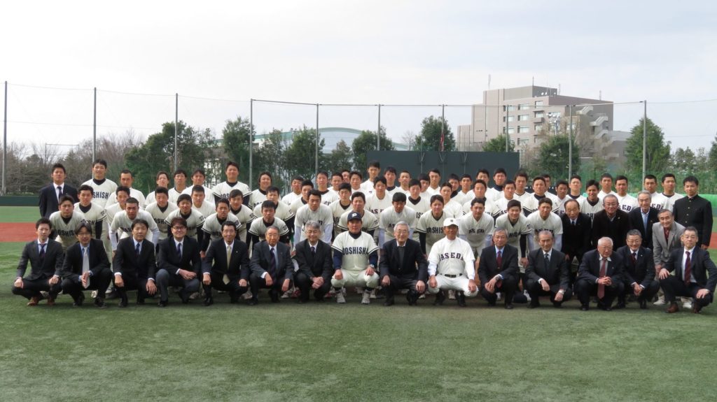 早稲田大学野球部初代部長の安部磯雄先生が、同志社英学校講師から東京専門学校(早稲田大学の前身)教授に転任されたことを記念して実施されている早同定期野球戦(安部定期戦)については、平成26年3月22日に東伏見の安部球場にて実に37年ぶりに復活され、昨年3月23日には復活第12戦がカローラ滋賀はちまんスタジアム(近江八幡市立運動公園野球場)において実施されたところですが、その復活第13戦が下記のとおり開催される予定となっています。早稲田大学京都校友会では、これまでに本戦復活の要望を行ってきた経緯から、今回もこれまでの復活戦と同様に同志社校友会等と連携を図りながら、役員を中心に見学・応援に参りますので、役員以外の校友の皆様におかれましても、奮って見学・応援にお越しいただければ幸いです。